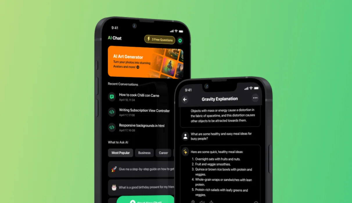 Aplikace AI chat je jednoduchá aplikace založená na chatu, která se připojuje k ChatGPT, umožňuje uživatelům klást jakékoli dotazy přímo v aplikaci. Aplikace také nabízí různé nástroje, které vám umožní skládat tweety, e-maily, překládat text, generovat obrázky, a více.