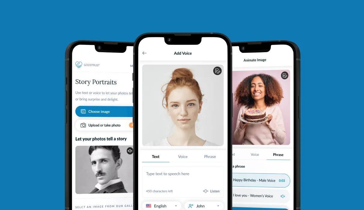 Spolupráce s naším klientem, GoodTrust Inc., na tvorbě poutavého obsahu. Oživili jsme statické obrázky a vytvořili dynamické živé fotografie s využitím technologie AI, která oživuje fotografie a videa, přičemž využívá text-to-speech.