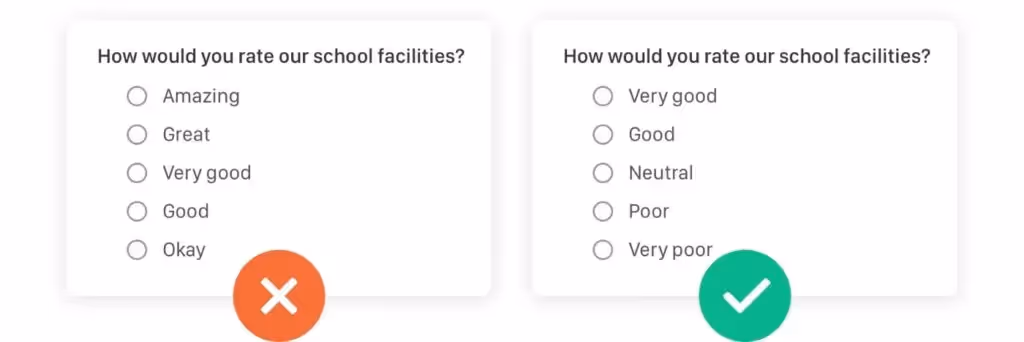 - Don't change scale orientation. In case more questions are utilizing a Likert scale or other rating scales, don't change the scale direction. People get easily confused.