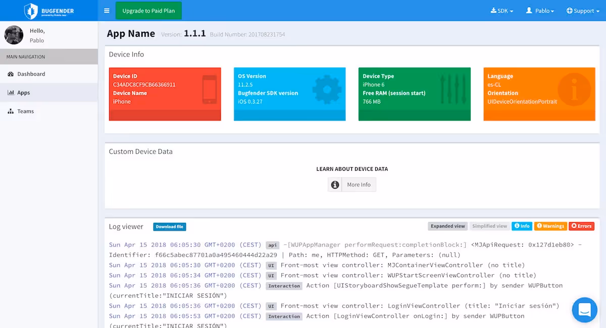 Easy to add to your project, Sentry automatically collects data like device info, web browser info, crash logs, and additional user interactions. The specifics of what is tracked depend on the platform and activated Sentry plugins. For instance, in the Android system, Sentry can track user interactions, HTTP calls, visited screens, and more. This information makes it easier to identify the cause of errors.