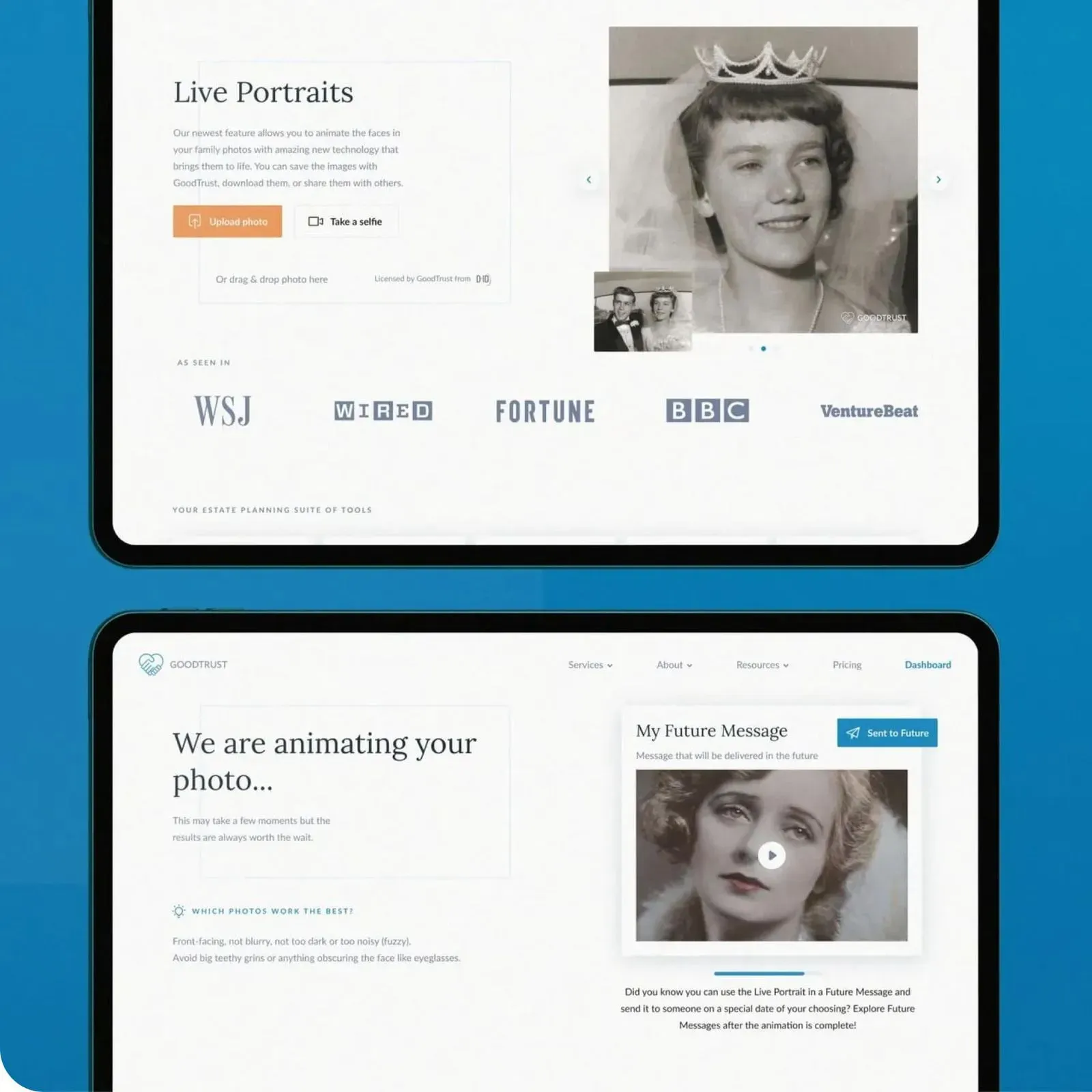 GoodTrust Life Stories utilizes AI technology to animate the faces in your family photos, bringing cherished memories to life. Easily save, download, or share these animated images with others through GoodTrust, adding a dynamic and engaging dimension to your visual legacy.