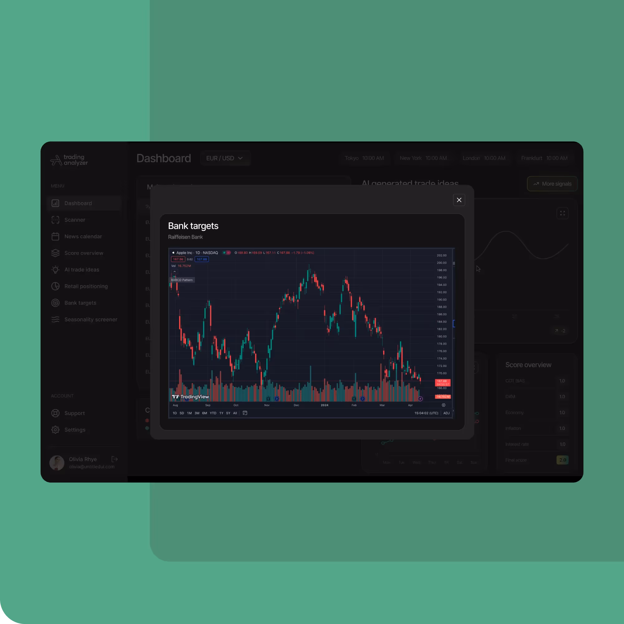 Access everything you need from one platform — including COT reports, seasonality data, and banking insights — all analyzed to highlight the best trading opportunities.