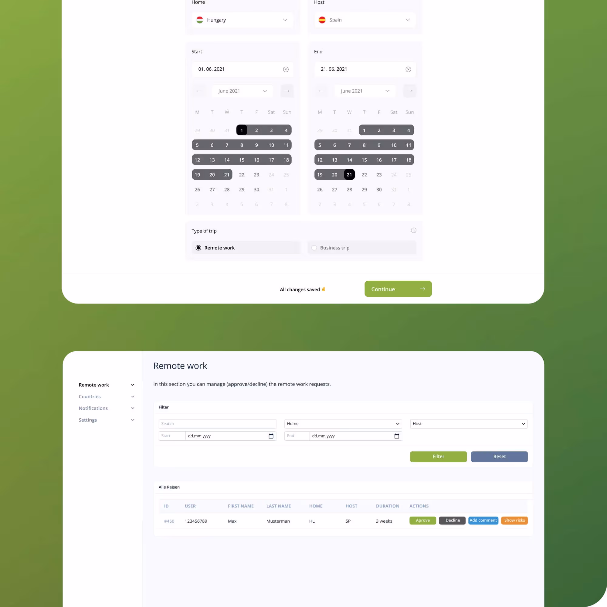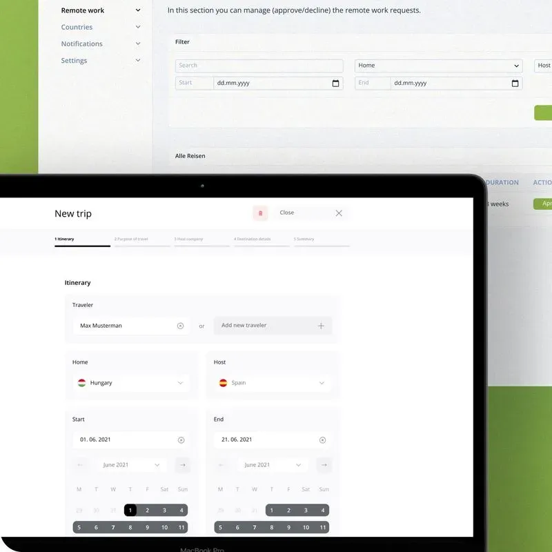 The application serves as a user-friendly input form for travellers, ensuring data quality through real-time validation. Each client benefits from a tailored instance, customizable to meet specific requirements. With interfaces for travellers and administrators, the app streamlines the entire process, making registration faster, more intuitive, and ultimately, a time-saving endeavour for companies and their posted workers.