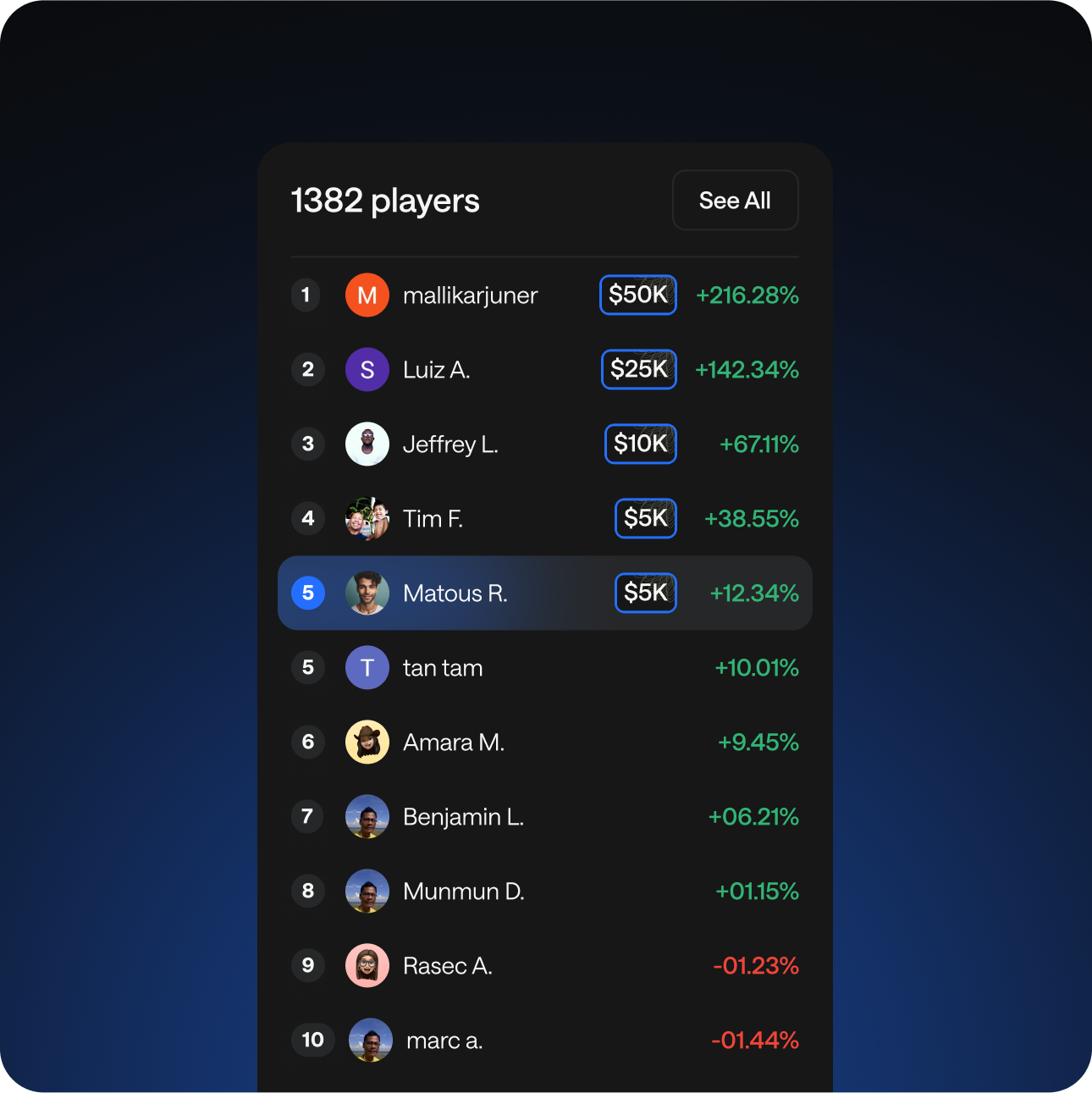 Díky umělé inteligenci dashboard okamžitě zobrazí zásadní metriky, od výkonnostních trendů traderů až po objem výplat. Tato úroveň datové přehlednosti umožňuje rychlejší a chytřejší rozhodování a pomáhá udržet ziskovost i při rostoucím počtu uživatelů.